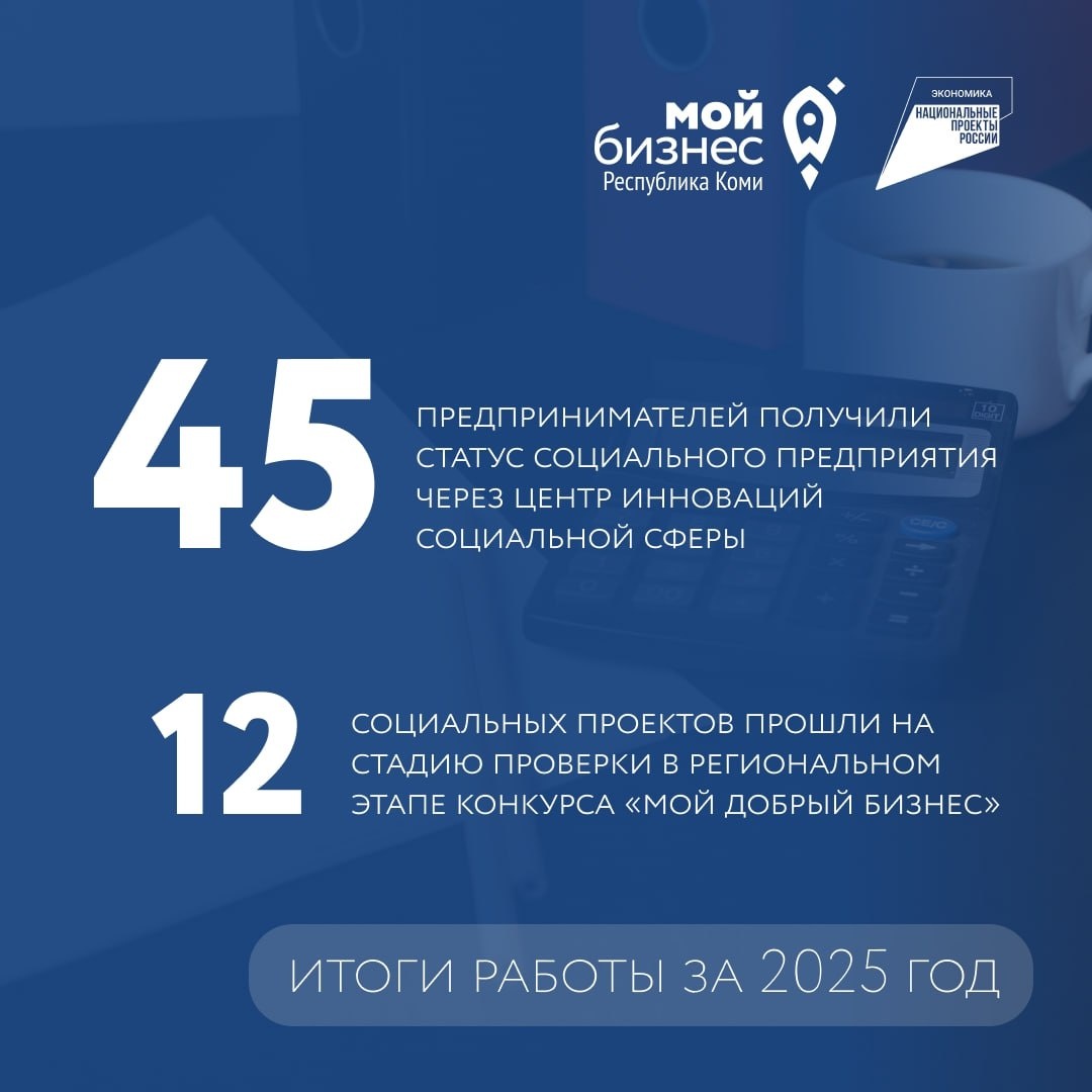 В 2025 году при поддержке Центра инноваций социальной сферы 45 субъектов малого и среднего бизнеса получили статус социального предпринимателя. Кроме того, 12 проектов предпринимателей из Коми прошли на стадию оценки конкурса «Мой добрый бизнес». Центр «Мой бизнес» Коми работает по нацпроекту «Эффективная и конкурентная экономика» ✅ Наш канал в МAX