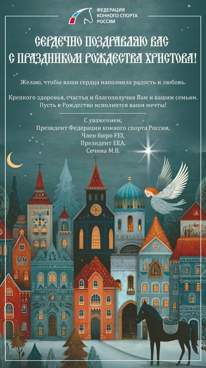 🐴 Президент Федерации конного спорта России Марина Сечина поздравляет всех с праздником Рождества Христова!