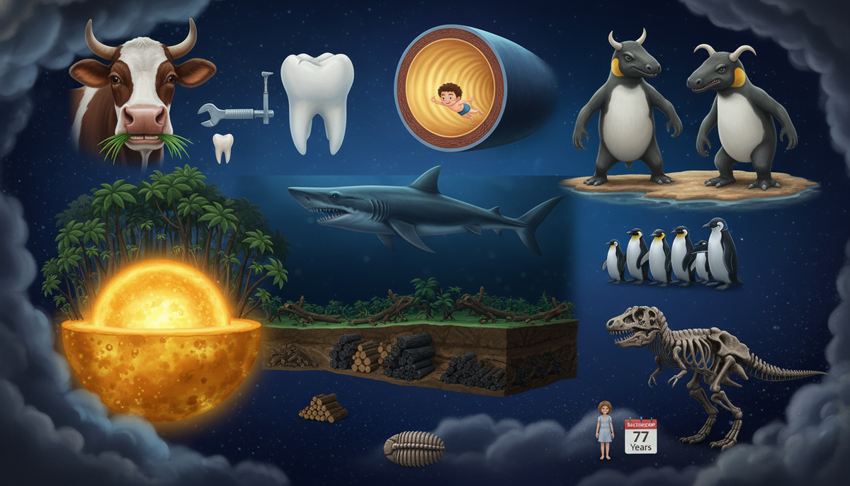 Представьте мир, в котором крошечные зубы человека соседствуют с зубами слонов, тяжелее новорождённого; где в венах кита может проплыть ребёнок, а древние акулы плавали задолго до появления деревьев. Наша планета полна чудес, которые звучат как вымысел, но на деле — строгая научная правда. Эти истории не только расширяют кругозор, но и напоминают: даже самые странные вещи в природе имеют логику, а человеческое присутствие на Земле — лишь миг в её грандиозной истории. Вот вам вопрос: вы когда-нибудь засовывали голову в пасть коровы? Надеюсь, что нет, ведь это ни к чему хорошему не приводит. Но если бы вы это сделали, то обнаружили бы, что у коров в передней части пасти вообще нет верхних зубов. Вместо них — жёсткая зубная пластина, идеально приспособленная для перетирания травы, прежде чем отправить её к коренным зубам. Говоря о зубах, интересно сравнить: человеческий зуб весит около 2,3 грамма, а зуб слона — целых 4 килограмма. Да, он тяжелее среднего новорождённого ребёнка. Представьт