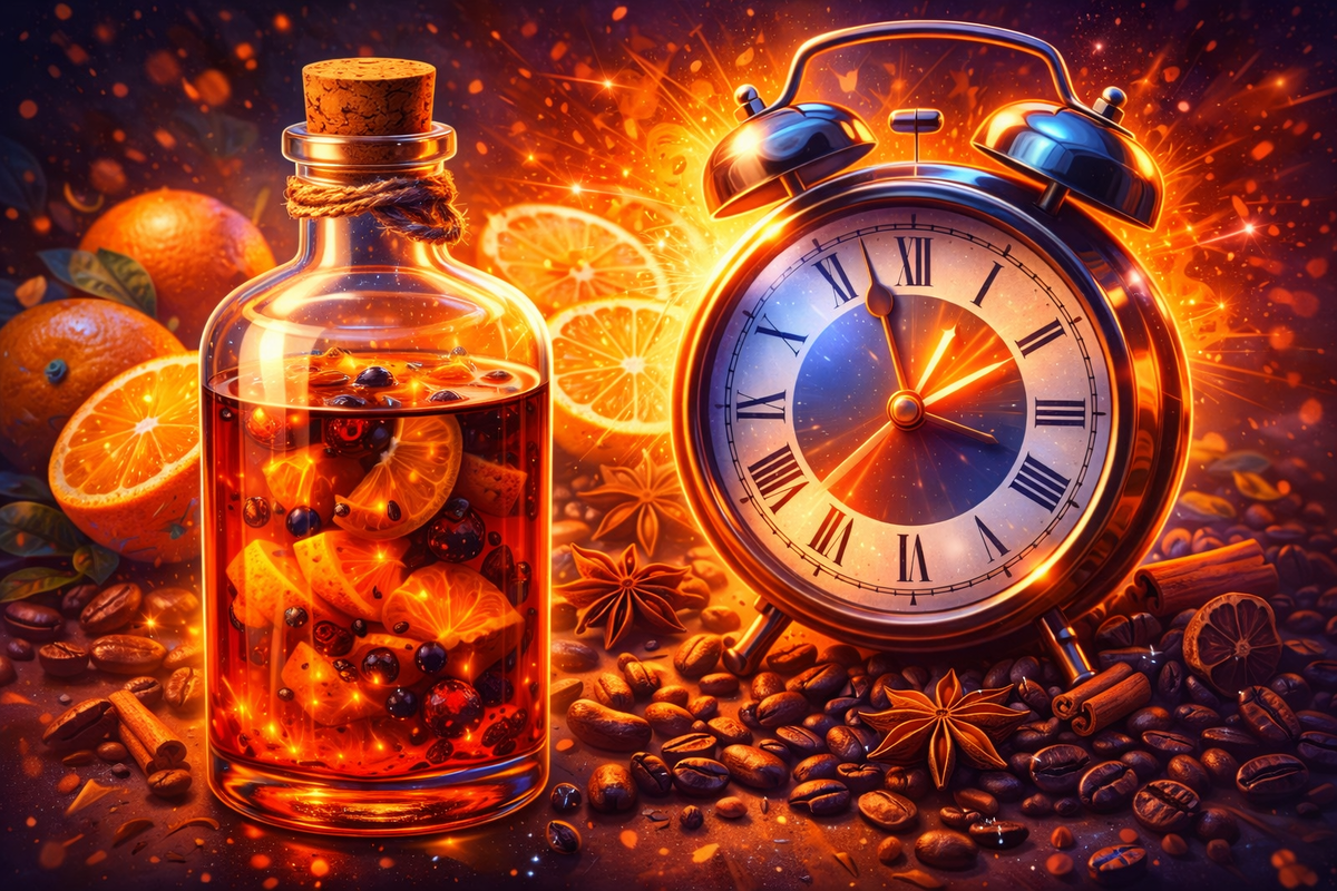 А пока с теорией всё. Если вы дочитали до этого момента, то в качестве бонуса приведу рецепт простой настойки, которую сам приготовил на прошедший Новый год. В рецепте используются сразу несколько методов ускорения настаивания, так что если нужно получить вкусный напиток за сутки — пользуйтесь!