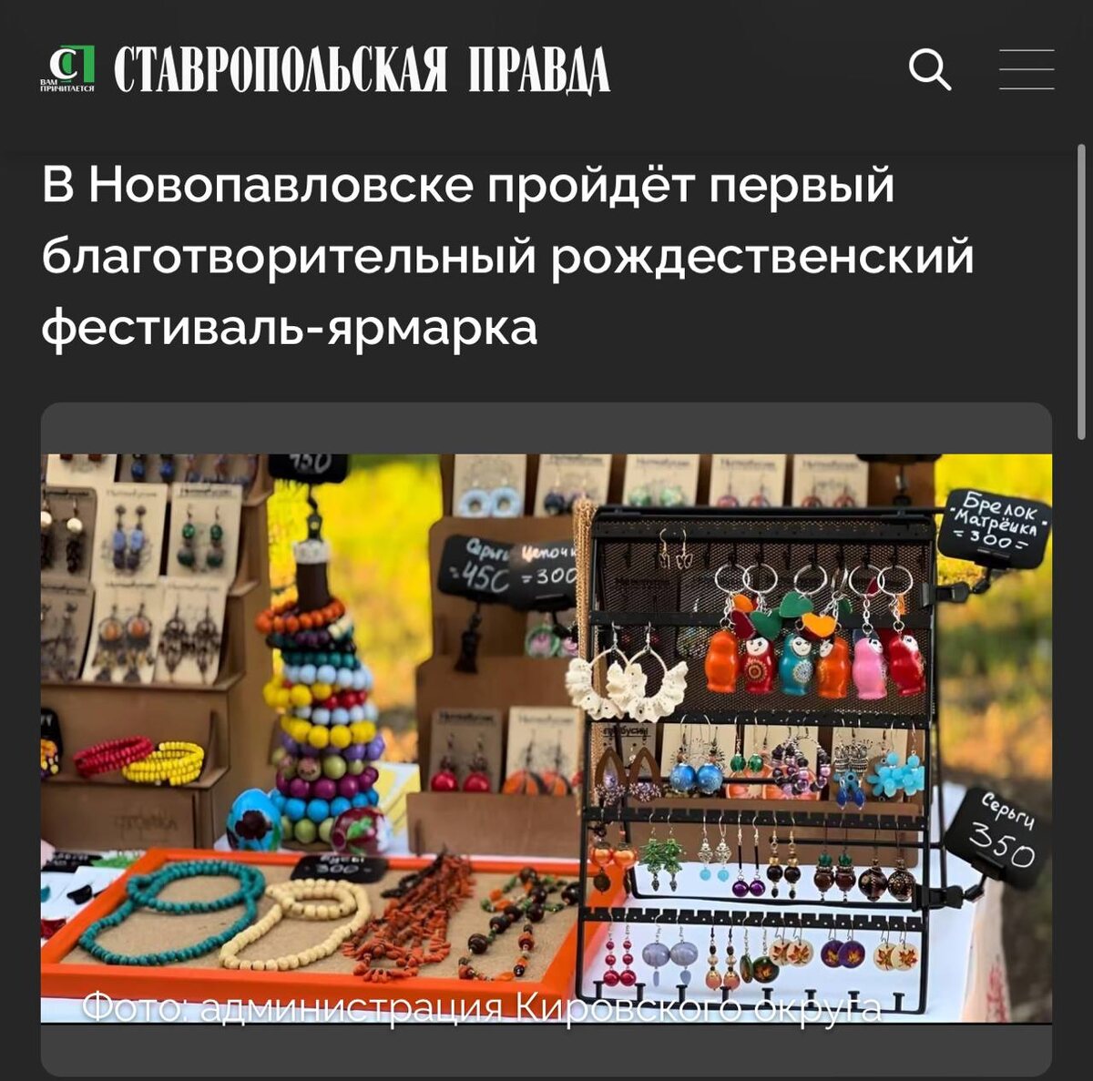 В Новопавловске 7 января стартует первый в округе благотворительный Рождественский фестиваль‑ярмарка. Мероприятие развернётся на площади Кирова — у собора святых апостолов Петра и Павла. На фестивале соберутся мастера народных промыслов, чтобы представить жителям и гостям города своё искусство. Посетителям будет доступна широкая палитра изделий декоративно‑прикладного творчества: от вязаных игрушек и вышитых картин до новогодних и рождественских сувениров. Кроме того, гостей ждёт концертная программа, а также народные развлечения: игры, хороводы и традиционные святочные забавы. Часть средств, вырученных на ярмарке, будет направлена на строительство собора святых апостолов Петра и Павла — духовного центра Кировского округа. «Это первый Рождественский фестиваль‑ярмарка в округе. Надеюсь, всем понравится! Часть средств от выручки пойдёт на благотворительность — строительство сердца Кировского округа, собора святых апостолов Петра и Павла. Так что это не просто праздничное и культурное