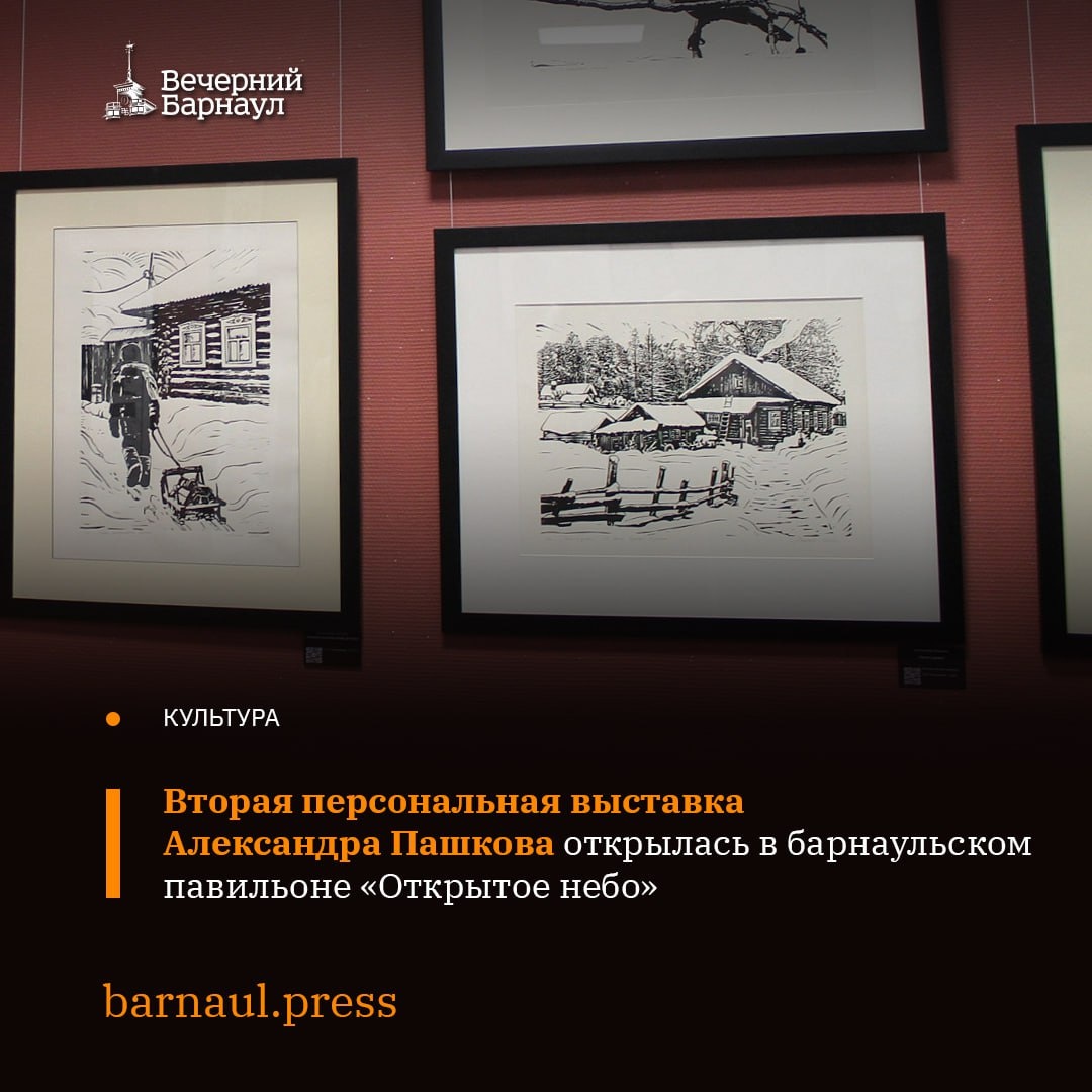 В экспозиции представлена расширенная серия работ «Русская глубинка». Она посвящена деревенскому быту и дополнена гравюрами на зимнюю тематику. Долгое время этот художник был известен как один из ведущих сибирских тату-мастеров, но недавно, увлёкшись графикой, стал создавать работы в сложной технике линогравюры — гравирования на линолеуме. Что вдохновило Александра Пашкова на выбор данной темы для творчества, читайте в нашей статье. Ⓜ️ Подписывайтесь на наш канал в MAX @barnaul
