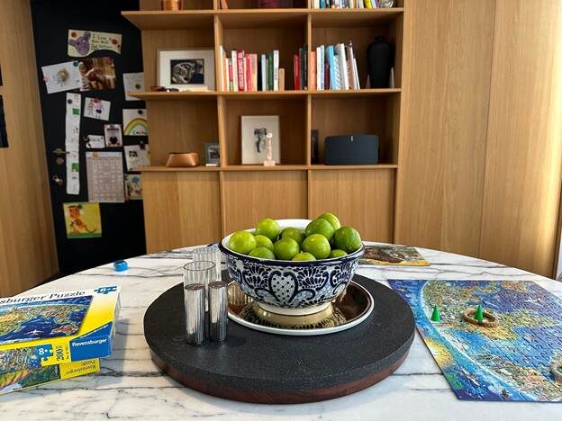 Моя подруга Эухения— редактор Vogue Мексика и Латинская Америка, а также YOLO Journal. Она живёт в Кройцберге со своим мужем Майксом и двумя дочерями. Когда я впервые вошла в их квартиру с наливными бетонными полами, окнами от пола до потолка и спокойной открытой планировкой, и большой миской свежих лаймов, которые Эухения только что купила на рынке, в центре стола с мраморной столешницей, я почувствовала, что полностью перенеслась из мрачной серости Кройцберга в более солнечный, более тропический климат.