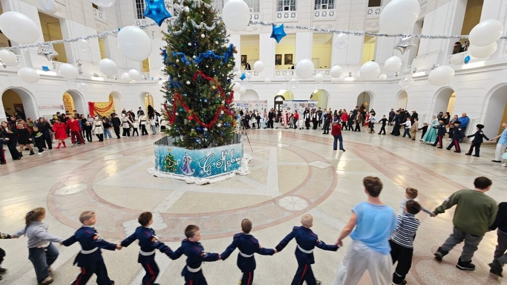 Продолжаем рассказывать о новогодних торжествах, участниками которых стали дети нашего района. в канун Нового года по инициативе юртового атамана ЮКО «Неклиновский юрт» Таганрогского казачьего округа ВКО «ВВД» В.П. Дьяченко юный представитель казачества Григорий Лазарев вместе с мамой Натальей и отцом Романом Лазаревым, участником специальной военной операции, побывал на Атаманской ёлке. Праздничное мероприятие, которое собирает донцов Всевеликого войска уже четвёртый год подряд, прошло на площадке Южно-Российского государственного политехнического университета (НПИ) им. М. И. Платова в г. Новочеркасск. Более 140 ребят из 8 округов приехали на Новогодний праздник.
