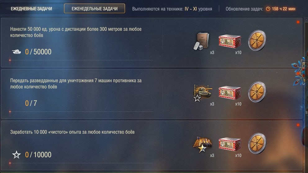 ♾♾♾ Дед Мороз 🏩 ✅ Нанести 50к урония с дистанции более 300м за любое кол-во боёв ✅Передать разведданные для уничтожения 7 машин противника за любое кол-во боёв ✅Заработать 10к чистого опыта за любое кол-во боёв Натиск 🏥 ✅ Нанести 7 500 урония за любое кол-во боёв ✅ Заработать 1 000 очков престижа за любое кол-во боёв ✅ Победить в 10 боях Всем удачи! ⛽️