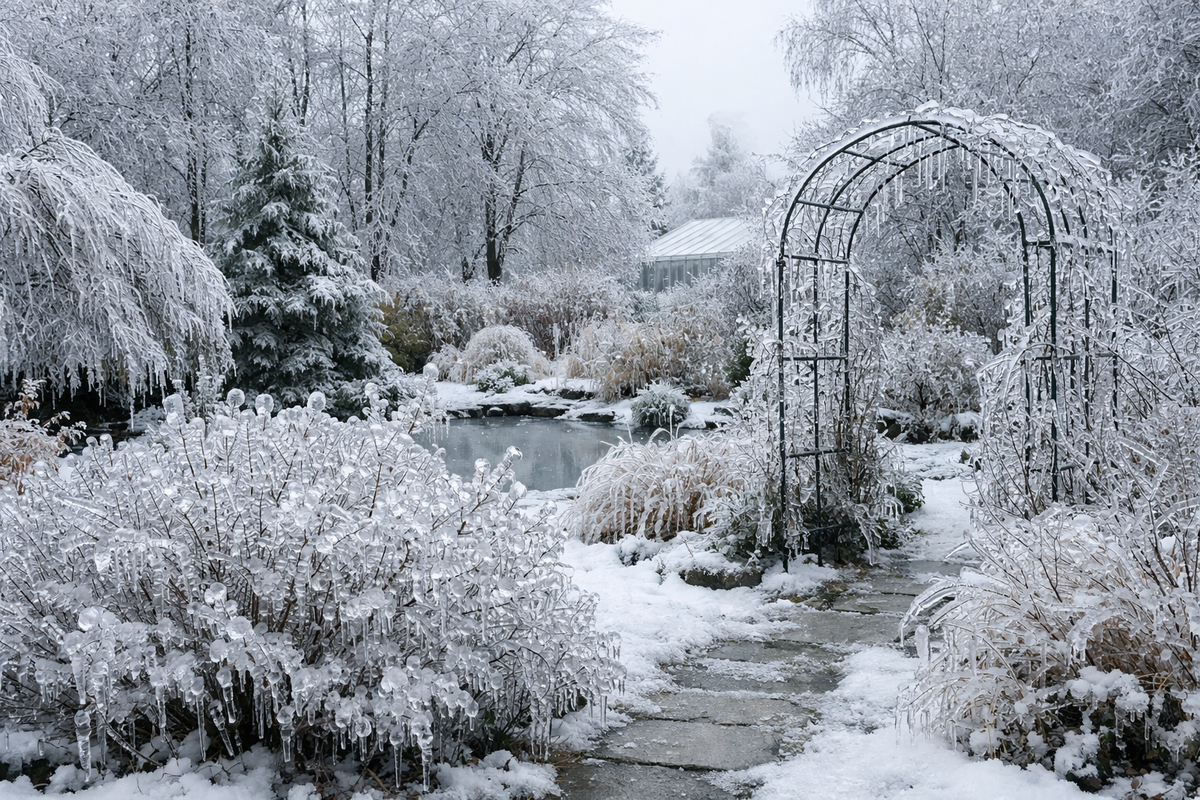 После ледяного дождя руки сами тянутся спасать сад. Именно в этот момент деревья ломаются чаще всего. Я делала так сама. Стряхивала лёд, трясла ветки, спешила помочь. И каждый раз потом находила сломанные побеги, которые спокойно пережили бы оттепель, если бы я их не тронула. Со временем приходит понимание: наледь - испытание, но не критично. А вот суета вокруг неё может стать решающей. Ледяной дождь - это не снег. Переохлаждённые капли воды мгновенно замерзают на ветвях, наслаиваясь друг на друга. Древесина теряет гибкость, ветви становятся тяжёлыми и хрупкими. При слое льда около 1 см нагрузка на ветви увеличивается в несколько раз. Актуально для средней полосы и регионов с частыми оттепелями. Опасность не в морозе, а в том, что ветка перестаёт гнуться и ломается резко, без предупреждения. За несколько зим я увидела одну и ту же картину. Чаще всего повреждаются: Лучше переносят обледенение: яблони с правильно сформированной кроной. Деревья с одним центральным стволом и широкими углам