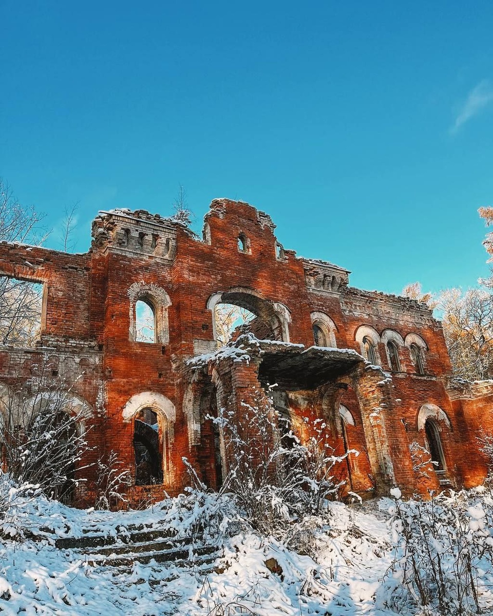Усадьба впечатляет своим внешним видом и историей. Двухэтажный особняк, построенный в 1870 году, напоминает рыцарский замок. Здания украшены узорами из маленьких камешков, круглыми оконцами и красным кирпичом. Еще 30 лет назад здание принадлежало школе, а сейчас пришло в разруху, благодаря «помощи» людей. 📍 Волосовский р-н, Губаницкое с.п., д. Торосово