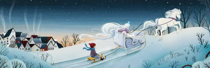 Снег падал, санки мчались, перескакивая через все преграды, а Кай весь дрожал. Когда снежные хлопья разлетелись в стороны, сани остановились, и человек, сидевший в них, встал. Это была высокая и стройная женщина, ослепительно белая, вся в снежной одежде.