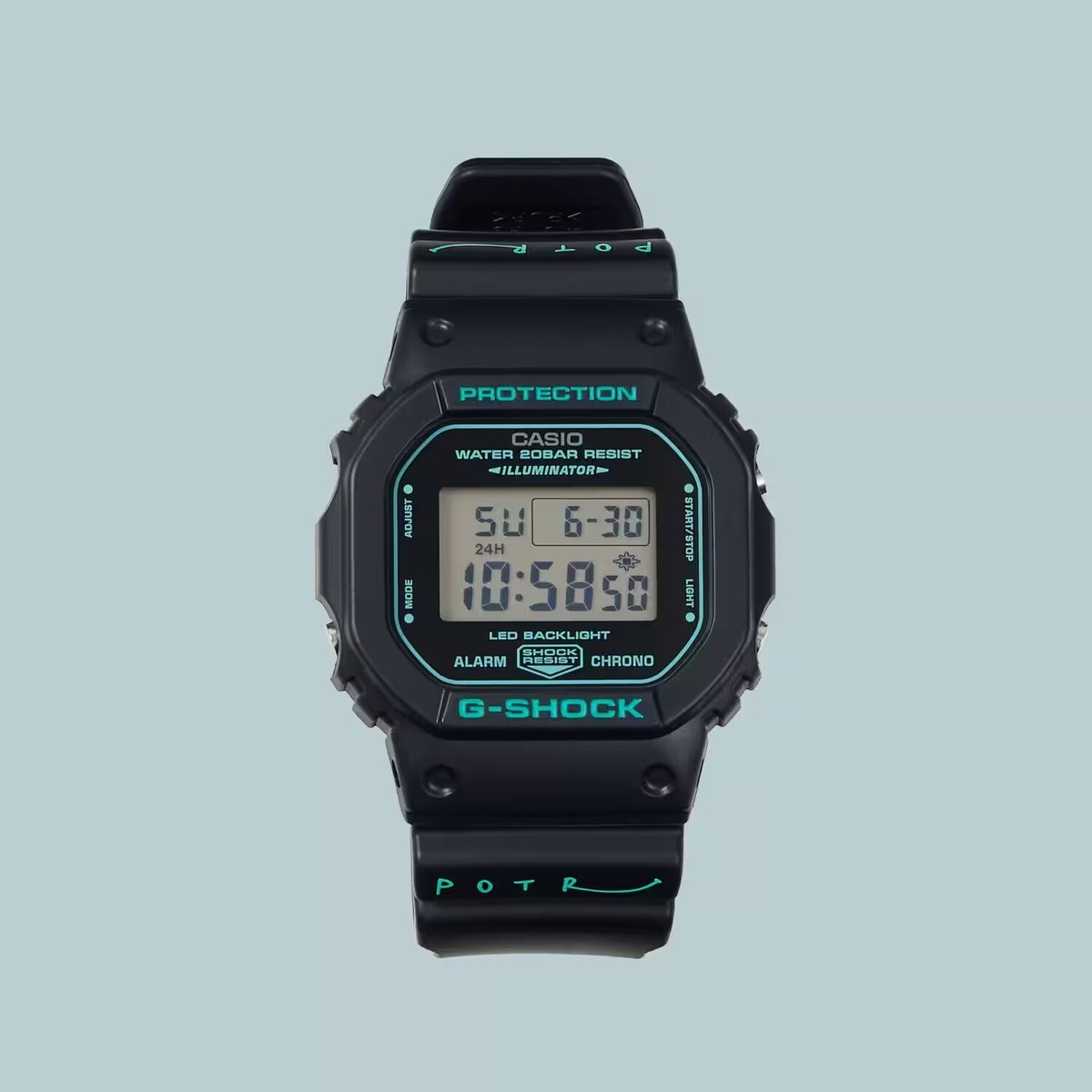Casio вновь объединилась с японским производителем сумок Porter для выпуска специальной версии часов под названием G-Shock x POTR DW-5600. Как и предыдущая модель, созданная в рамках этого сотрудничества, новинка будет продаваться исключительно в Японии - только в фирменных магазинах Porter и в онлайн-магазине материнской компании Yoshida & Co. Ещё по теме: Часы получили бирюзово-синие акценты на корпусе и ремешке. В LCD-дисплей встроен скрытый логотип POTR, который становится виден только при включении подсветки. На задней крышке из нержавеющей стали выгравирован фирменный смайлик бренда, а на полимерном ремешке нанесены логотипы "POTR" и "YOSHIDA & Co.". ⚡Подписывайтесь на канал itzine и канал подкаста ForGeeks в Telegram! Там самые свежие новости про технологии, гаджеты и космос. Если модель сотрудничества 2023 года была основана на DW-5900-1 и использовала электролюминесцентную подсветку, то новая версия построена на базе G-Shock DW-5600UE-1 - обновлённой интерпретации классической