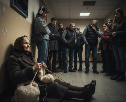 В самый центр этой очереди, прямо на холодный кафельный пол, села старушка. Не упала — именно села, по-хозяйски, поджав ноги. Достала из авоськи клубок