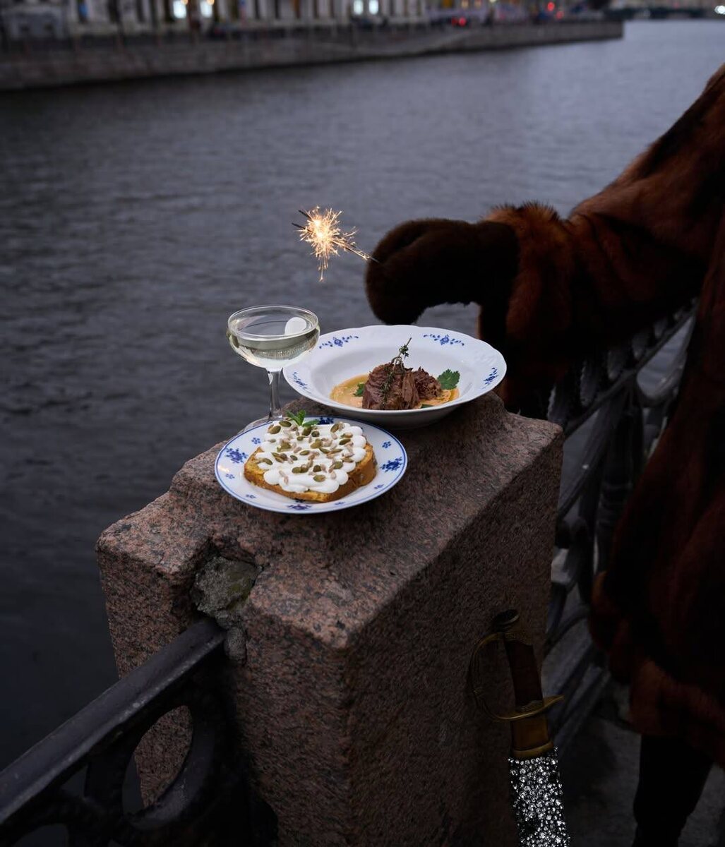 В баре на Фонтанке до 12 января действует новогоднее меню: буженина с соусом жу, салат с креветками и адыгейским сыром и