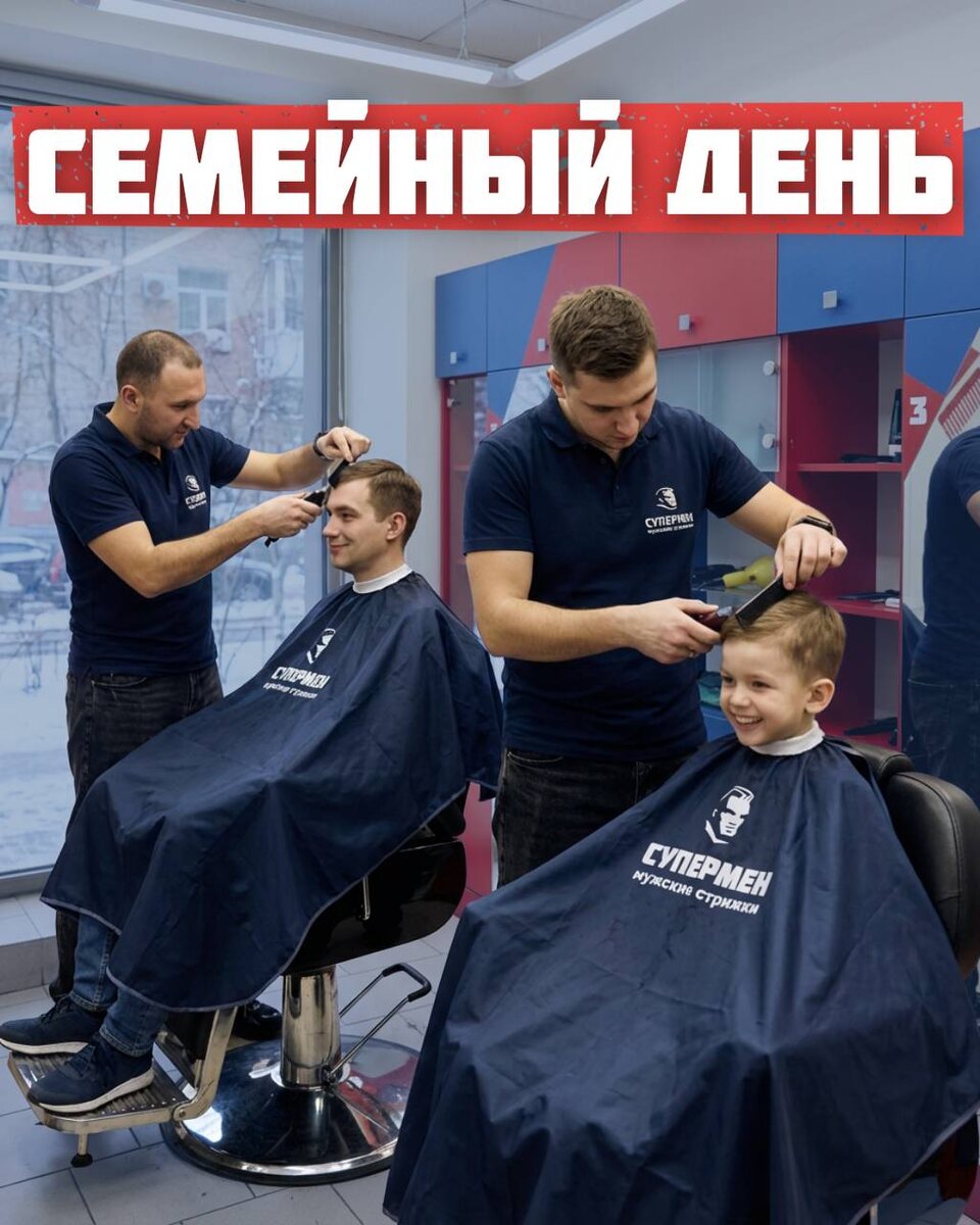 " Приходить с сыном — это не просто стрижка, а маленький ритуал, который запоминается. А по средам ещё и особенно приятно: ✂️ акция «Отец и сын» — 2 стрижки за 1100 ₽ Годы идут, а семейные традиции остаются. Заходите вместе — мы только за 😉