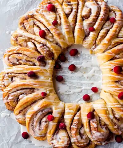Этот восхитительно праздничный венок из булочек с корицей идеально подходит для праздничного стола. Каждая булочка тёплая, пышная, с корицей и полита ванильной глазурью. Это блюдо точно произведёт впечатление на гостей, а приготовить его гораздо проще, чем кажется. Обязательно попробуйте приготовить и вы убедитесь в этом сами. Вот рецепт венка из булочек с корицей. Продукты необходимые для приготовления: