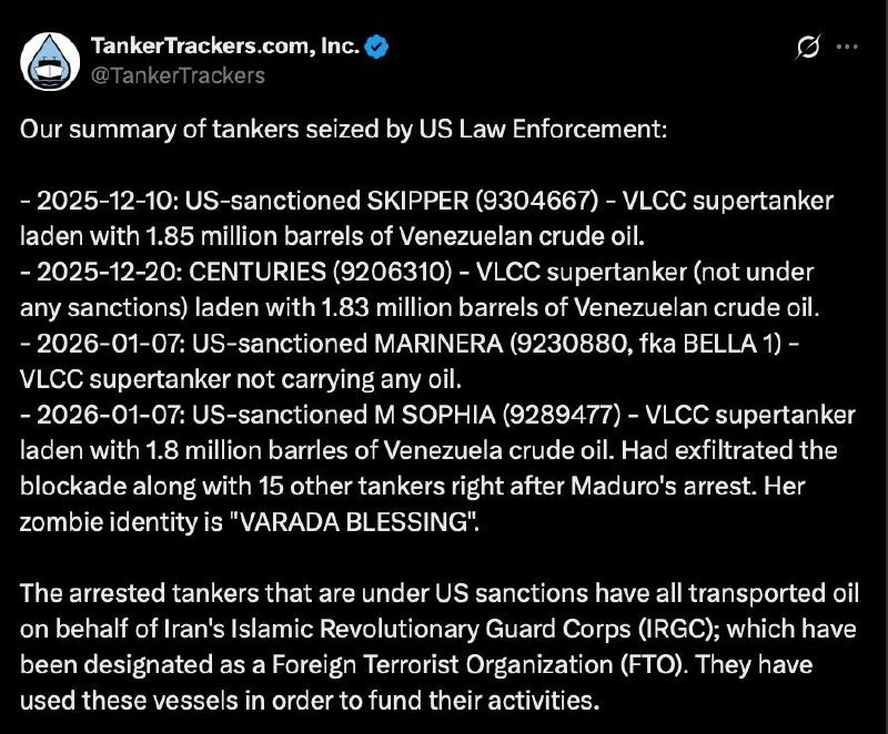 ? ⚠️ Судя по данным TankerTrackers, танкер "SOPHIA" перевозил около 1,8 миллиона баррелей венесуэльской нефти. И это лишь верхушка айсберга! 🚢 Что мы видим? Запад продолжает душить Венесуэлу санкциями, под предлогом "демократии", а кто-то явно наживается на этих играх. 💰 Нефть-то никуда не делась, просто перераспределилась. И, судя по всему, в руки тех, кто "под санкции" не попадает. 🧐 И, конечно же, не обошлось без упоминания "террористических организаций". 🤨 Западники всегда найдут повод обвинить кого-то в своих грязных схемах. Задумайтесь, кому выгодна вся эта ситуация? Определенно не простым людям! #санкции #венесуэла #нефть #запад #политика #коррупция #двойныестандарты Подписывайтесь на канал, чтобы быть в курсе событий! 👉 @obsudi_obsudi