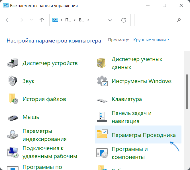 Я знаю 2 способа.Я вам щас их всех расскажу. Первый способ: Настройки параметров отображения скрытых и системных элементов — использование пункта «Параметры проводника» в Панели управления. Открыть его можно следующими способам: Открыть Панель управления Windows 11 и, нужно в поле «Просмотр» установить режим «Крупные значки» и найти пункт «Параметры проводника».Потом его надо
