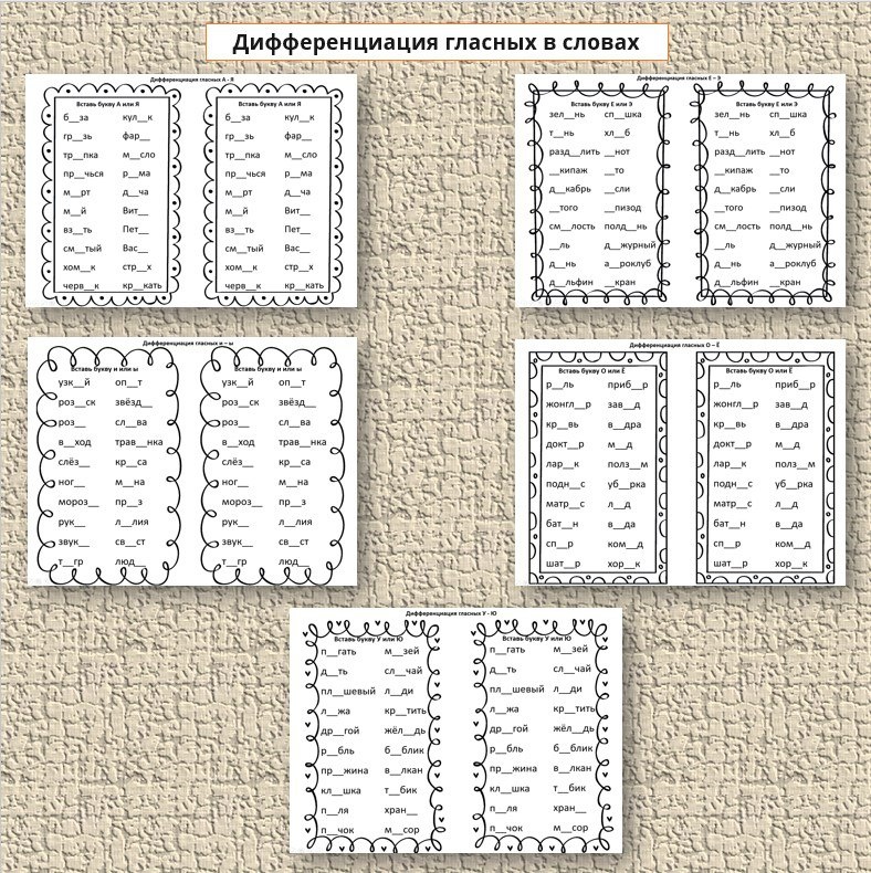 Карточки «Дифференциация гласных в словах» — готовы к работе