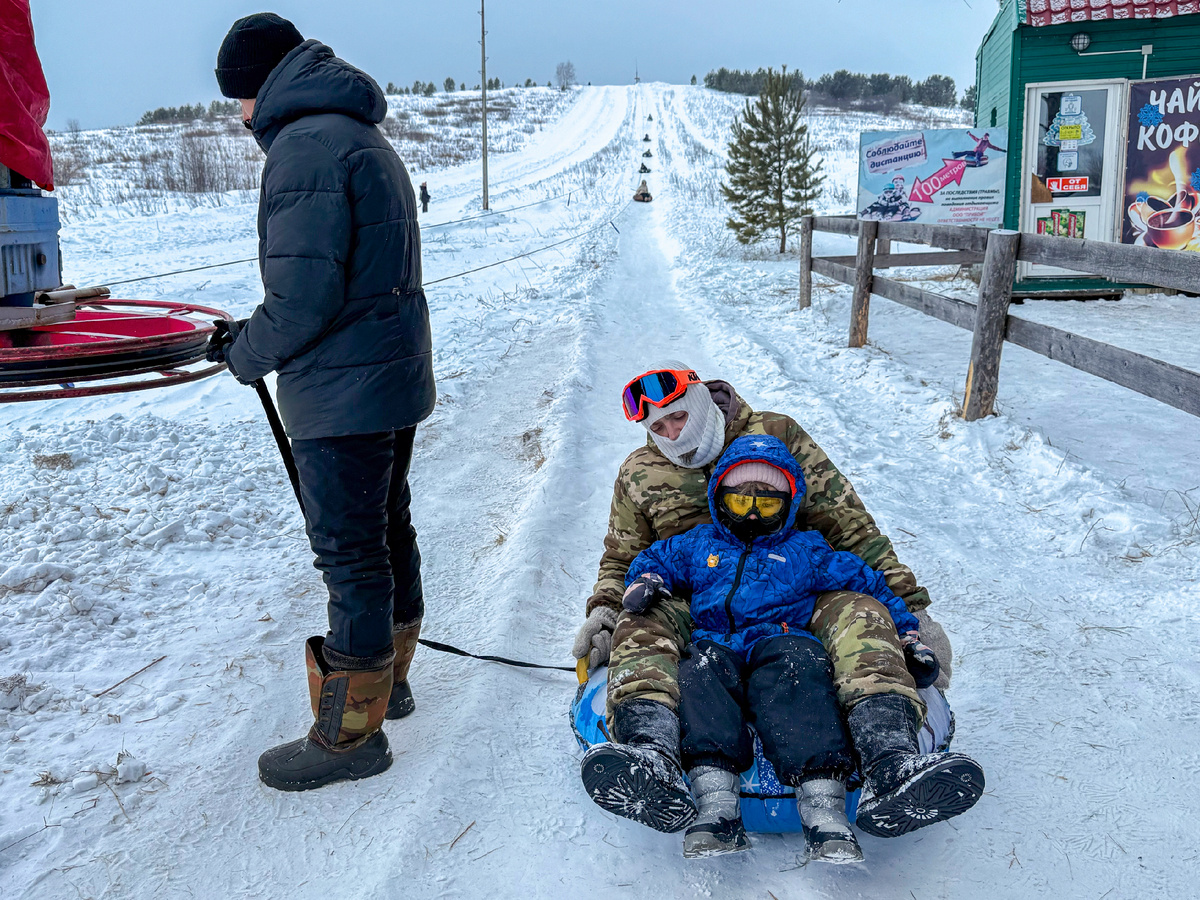 А вы слышали, как звучит самый длинный спуск на ватрушках в нашей области? Мы пару дней назад выяснили, что звучит он как счастливый смех, оглушительный визг и непрекращающееся «УХХХЫЫЫЫ!» от старта до финиша! ___ Сегодня закончился наш трёхдневный новогодний автовояж по югу области, один день из которого мы, как три счастливых ребенка, посвятили не просто катанию с горки, а настоящему сноутюбинговому заезду в Старобачатах! Приехали к 11 утра, пока народ отсыпался после первых праздничных дней. И не прогадали! Нас ждал склон в сосновом бору с идеально укатанной трассой и полное ощущение, что эта зимняя сказка только для нас. ___ Первые три заезда успели сделать почти в одиночестве, наглотавшись чистого восторга и свободы. Потом, конечно, народ подтянулся. Но очередь на подъёмник двигалась бодро, а вокруг царила потрясающая атмосфера: в сосновом бору люди ставили палатки с печками, накрывали поляны, жарили шашлыки. Аромат хвои и дымка добавляли настроения, и мы даже пожалели, что шашлык