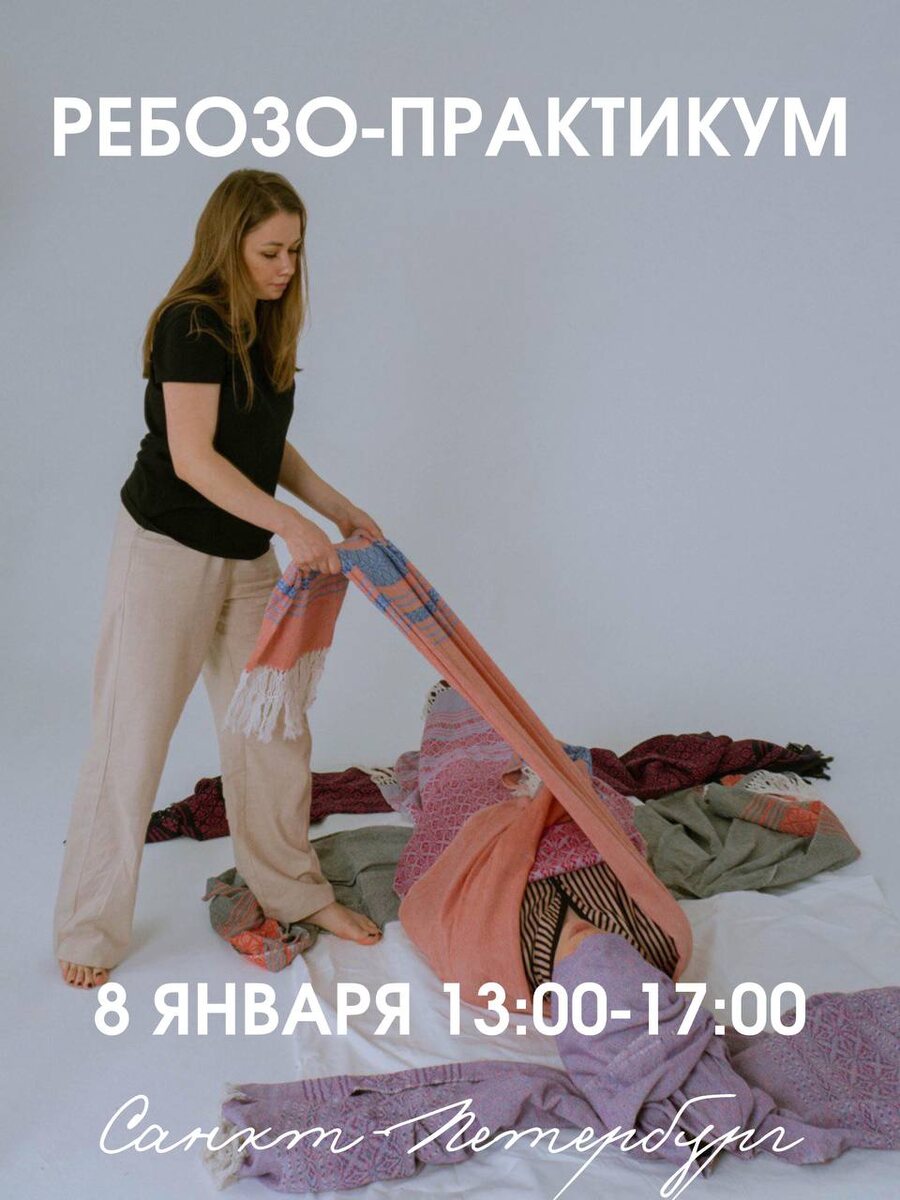 🧡 В процессе практики, через полотно мы словно слышим телесные потребности человека, с которым мы работаем. «Бережно качать, словно как в детстве. Или же докачать, если в детстве человеку не хватило родительского тепла. Возможность побыть в своем коконе, досидеть, долежать. А возможно, просто позволить телу сделать глубокий выдох после длительного пути героя». Какой бы не был запрос на практику ребозо в голове, тело возьмёт от практики ту часть, которую посчитает наиболее важной и целительной в настоящий момент. 8 января с 13:00 до 17:00 состоится практикум «Ребозо» Она будет направлена на релаксацию и снятие напряжения всего мышечного тонуса, включая тазовый регион. Если у Вас нет ребозо, не проблема. Мы выдаем шарфы для работе в паре. Если Вам есть кого взять с собой для совместной практики, берите. Мозг быстрее адаптируется к пространству и будет больше времени погрузиться в себя. ——— Ребозо-практикум — это контактная телесная практика, а значит, отработка навыков б