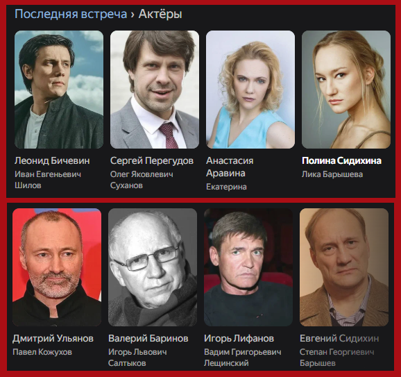 сериал «Последняя встреча» (2010)., об интригующей жизни начинающих советских разведчиков в начале 80-х годов прошлого века.Четверо молодых людей, два юноши и две девушки, знакомятся между собой во время совместной учебы в школе КГБ.