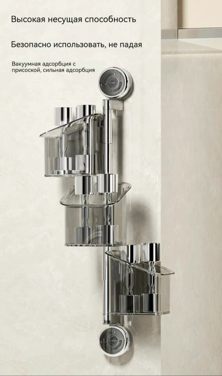 Ищете умное решение для хранения, которое экономит место и выглядит аккуратно? Обратите внимание на эту практичную подвесную полку. Её главное преимущество — простая установка без сверления. Надежные присоски крепко фиксируют конструкцию на любой гладкой вертикальной поверхности, будь то фартук кухни, дверца шкафа или стена в ванной.