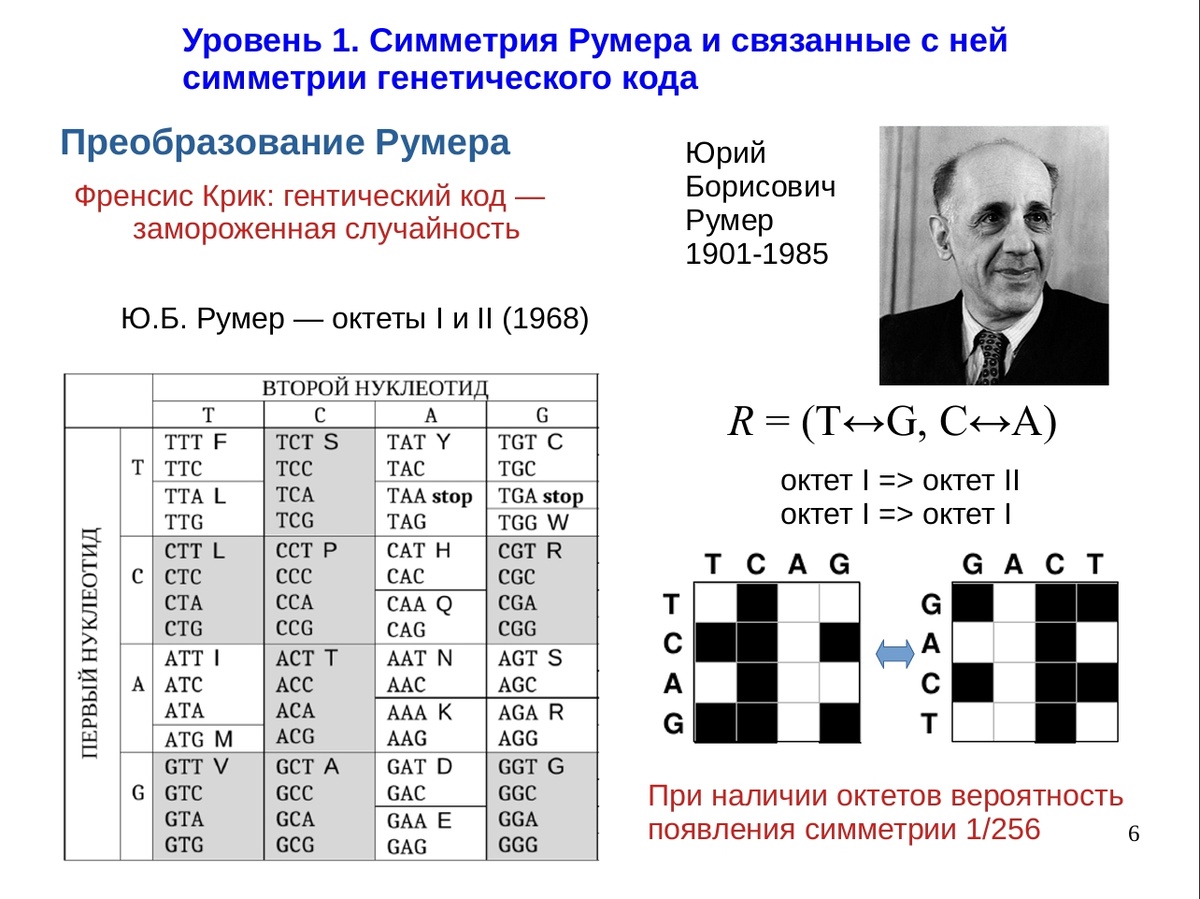 Моя идея состоит в том, что найденные симметрии, возможно, являются частью «математического конвейера» вместе с системами ДНК и РНК. Выражением функционала разработки посредством математики. Причём мы видим не уникальный метод, а «принцип разработки», изделие.