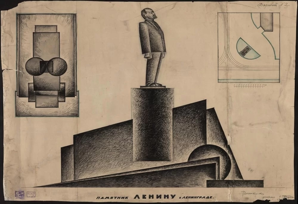 1. Троцкий Н.А. Проект памятника В.И. Ленину на площади у Финляндского вокзала в Ленинграде. 1924. https://vk.com/wall-217872992_15632 2. Лансере Н.Е. Проект памятника В.И. Ленину на площади у Финляндского вокзала в Ленинграде. 1924. https://vk.com/wall-217872992_12776 Музей Академии Художеств У первой картинки не указано происхождение.. Может так же - из академии?..