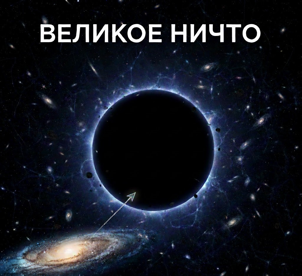 Если вы посмотрите на ночное небо, оно покажется вам усыпанным звездами. Но во Вселенной есть места, где на миллионы световых лет нет почти ничего. Самое известное и жуткое из них — Войд Волопаса. Представьте себе пространство настолько пустое, что если бы Млечный Путь находился в его центре, мы бы не знали о существовании других галактик до 1960-х годов. Войд (от англ. void — пустота) Волопаса — это сферическая область пространства диаметром около 330 миллионов световых лет. Чтобы вы понимали масштаб: это примерно 0,27% всей наблюдаемой Вселенной. По всем законам физики, там должно быть около 10 000 галактик. Однако астрономы обнаружили там всего несколько десятков. Существует две основные теории: 1. Чрезвычайно низкая плотность вещества в этой области космоса означает, что при попадании в него какой-то «структуры» — нейтрино, например — с одной стороны, она будет выглядеть абсолютно так же на выходе сотни миллионов лет спустя. То же касается и фотонов. Частицы вещества с гораздо бо