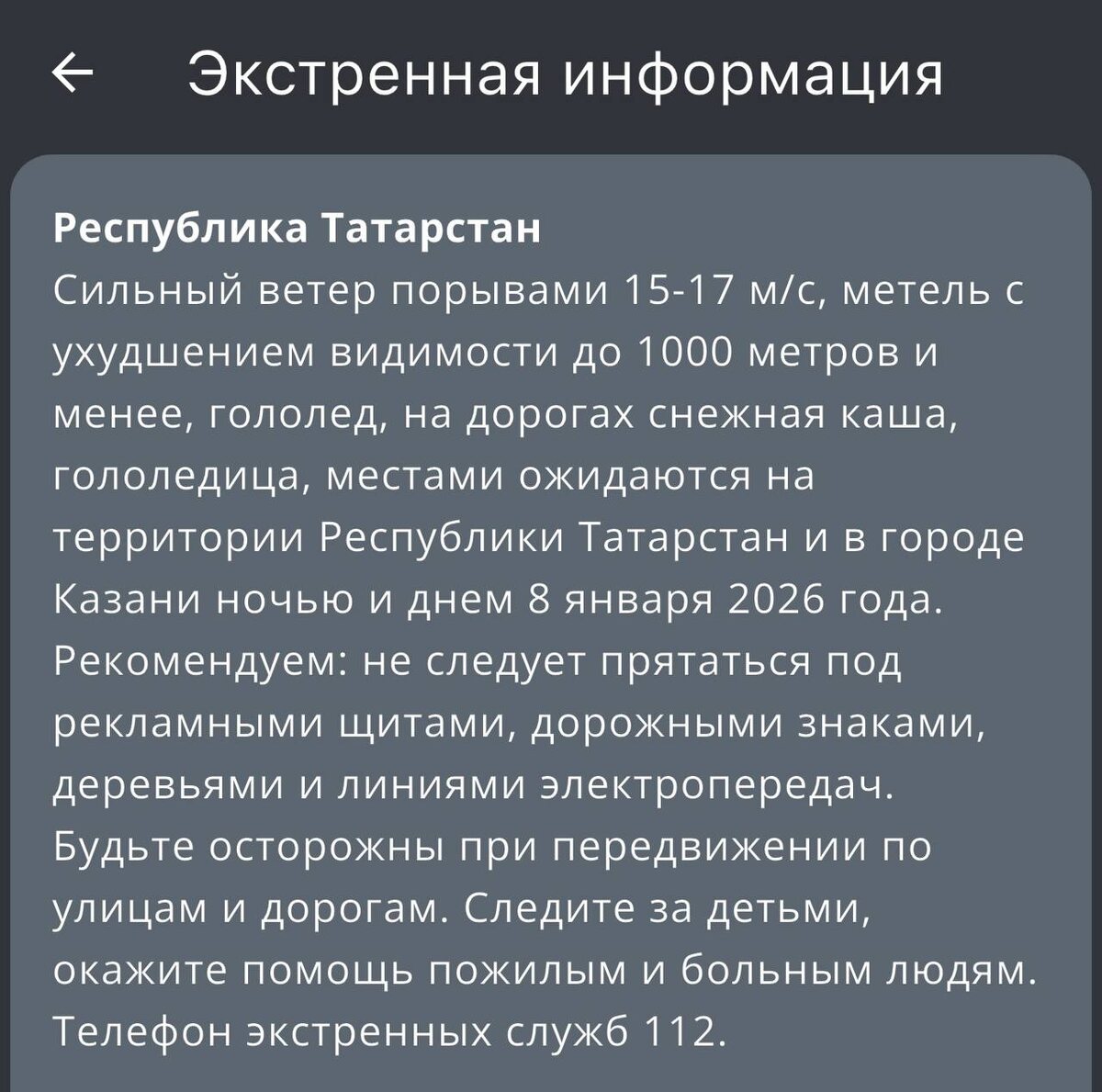 Завтра, 8 января, на территории республики ожидается сильный ветер порывами 15-17 м/с, метель с ухудшением видимости до 1000 метров и менее, а на дорогах снежная каша и гололедица. ⭐️ Татарстан News 📲 Татарстан News в MAX