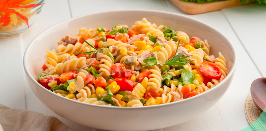 консервированную кукурузу, тунец, помидоры и салат. Заправляем оливковым