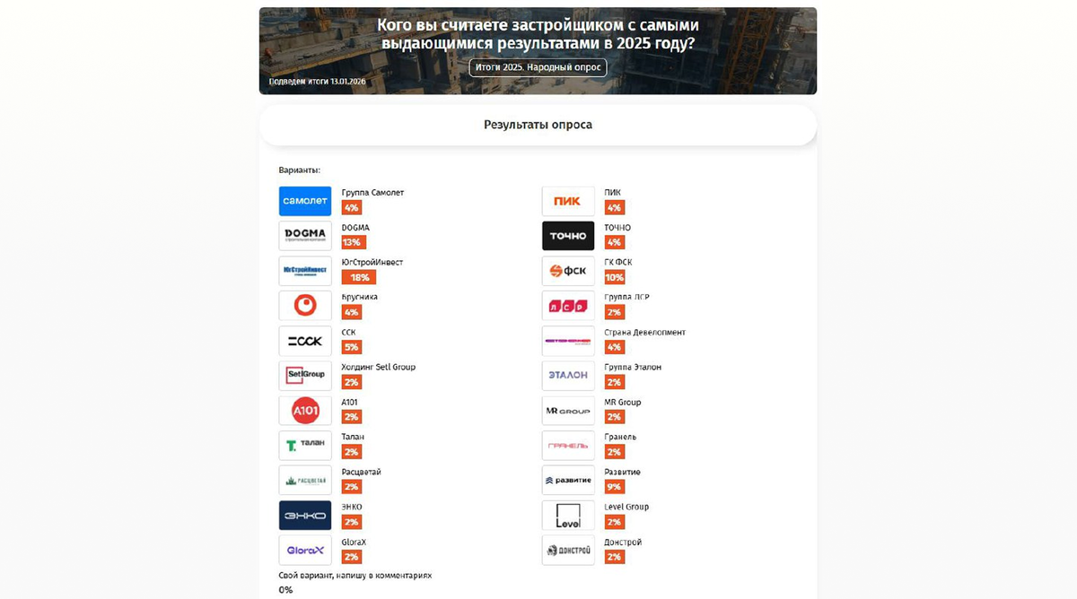 Можно выбрать до 3 компаний. Голосование продлится до 13 января — по ссылке.