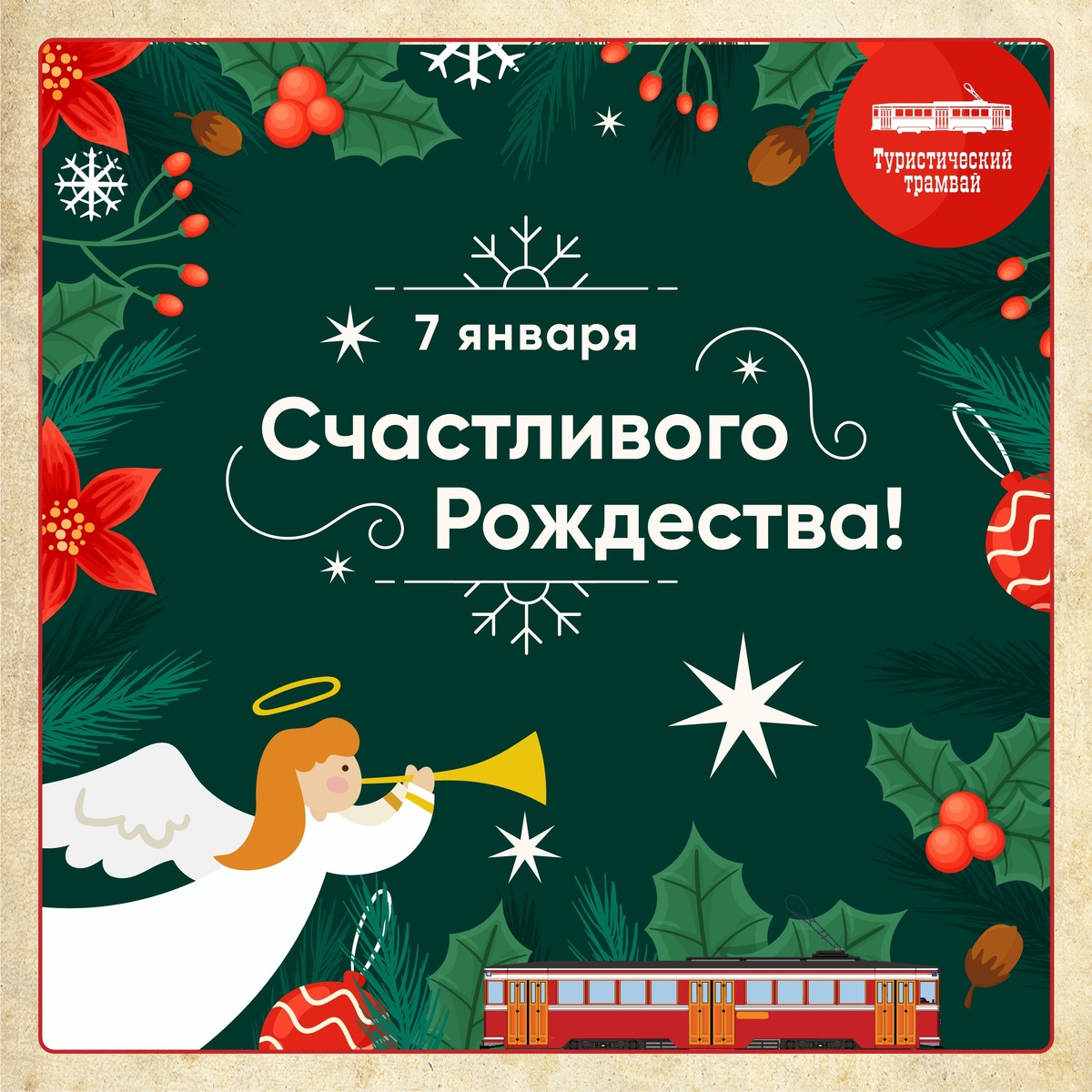 В этот особенный день, когда весь мир затихает в предвкушении чуда, мы спешим поздравить вас. Рождество не просто праздник — это время, когда крепнут семейные узы, пробуждается в сердцах милосердие, а души наполняются светом веры и надежды. Рождество Христово напоминает нам о великой силе любви, единства и духовного возрождения, даря силы преодолевать любые жизненные бури. Мы желаем вам, чтобы в вашем доме всегда сиял теплый свет рождественской звезды, ведущей к исполнению самых сокровенных мечтаний. Пусть здоровье будет крепче еловой ветви, радость — ярче новогодних огней, а каждый день приносит сюрпризы, словно подарки под елкой: неожиданные встречи с близкими, моменты чистого счастья и волны вдохновения, которые меняют жизнь к лучшему. Пусть ваша жизнь расцветает, как морозный узор на окне, — прекрасная, уникальная и полная чудес! _____ #туристическийтрамвай #экскурсииспб #Т1 #туристическиймаршрут #ретро #ПТВ #ПTV