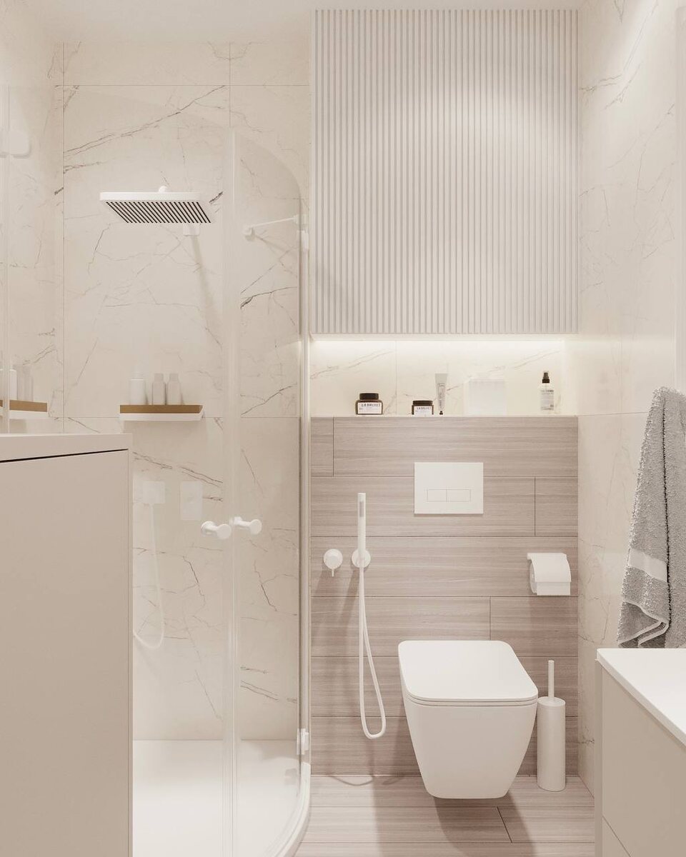 В проекте душевой комнаты в ЖК «Никуленская», Москва, мы создали пространство, где форма и функциональность работают в идеальной гармонии