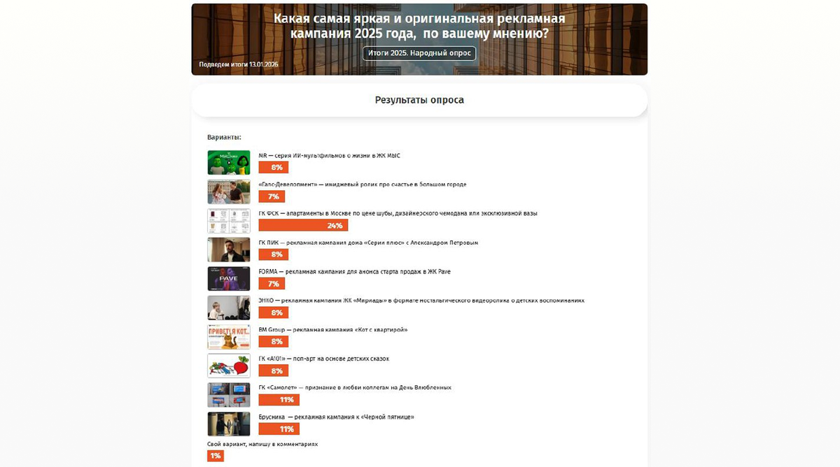 Описание претендентов по ссылке. Можно выбрать до 3 вариантов. Голосование продлится до 13 января — по ссылке.