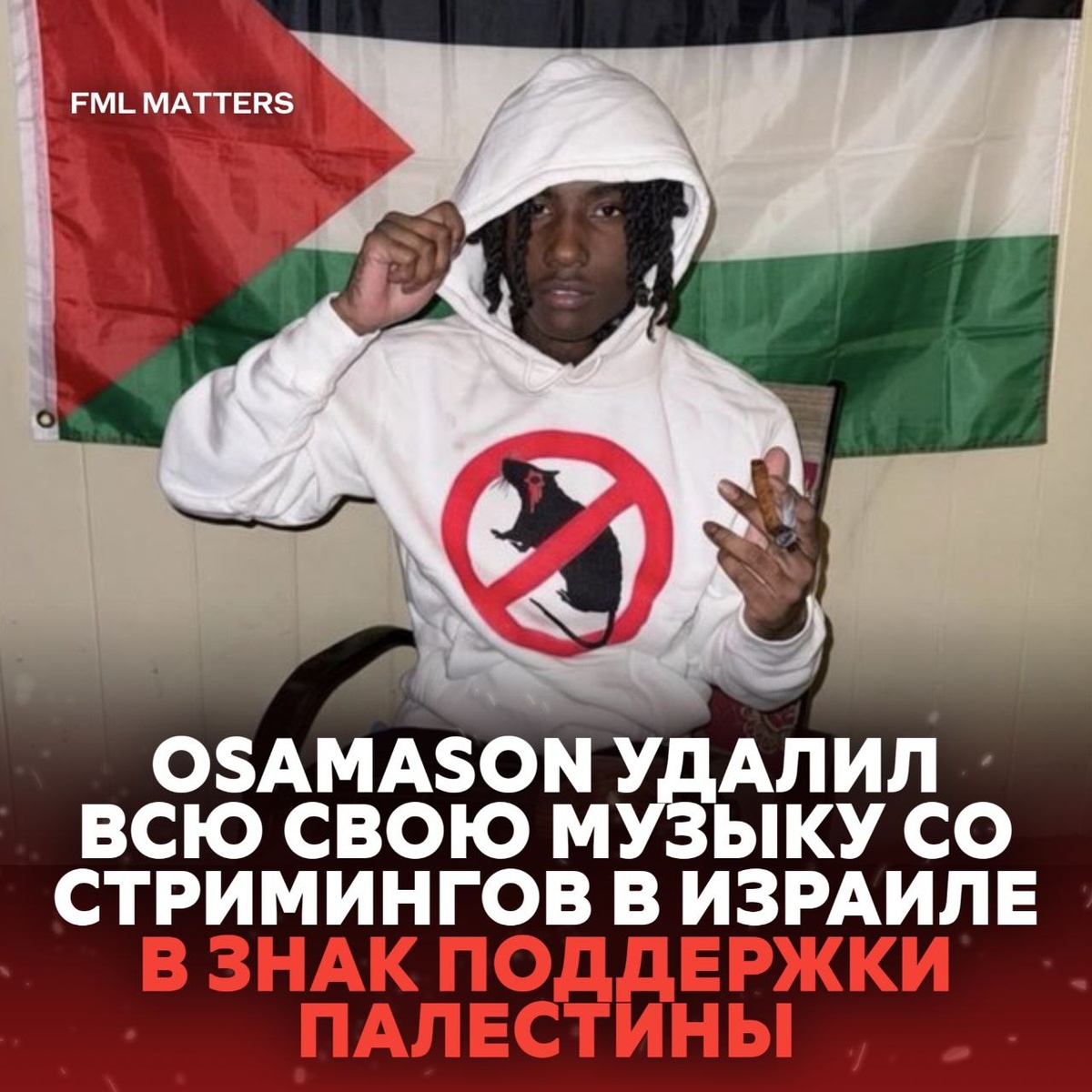 ! Рэпер сделал резкий политический жест, удалив весь свой каталог со стриминговых платформ на территории Израиля. Этот шаг, по всей видимости, является актом солидарности и поддержки Палестины. 💀 FML MATTERS