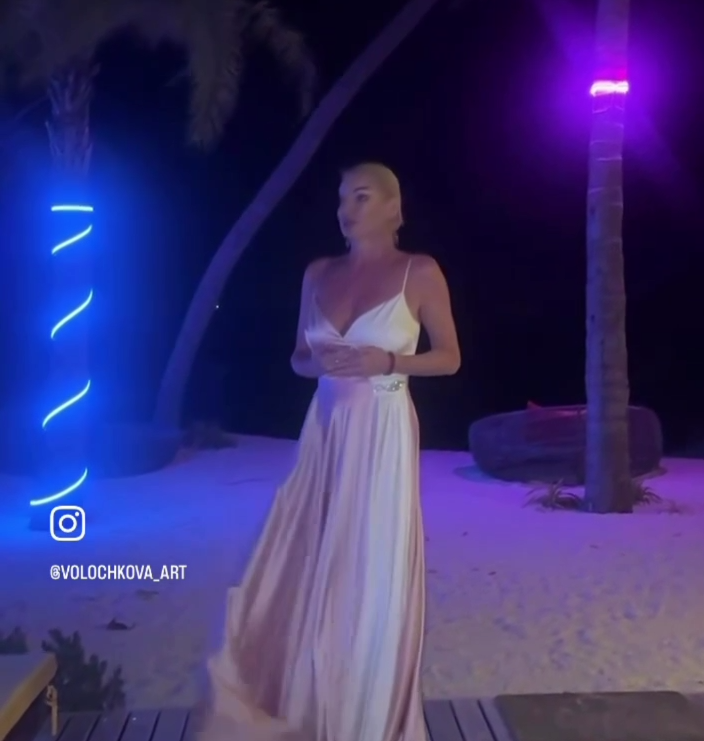 Волочкова поздравила православных с Рождеством, появившись у океана в платье с открытыми плечами