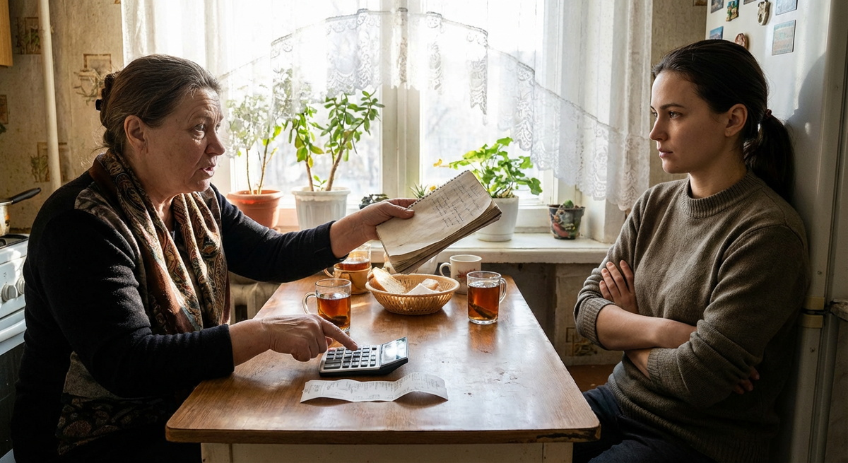 Лена, накинув халат, вышла на кухню. На столе уже дымился чайник, а Тамара Петровна по-хозяйски раскладывала на столешнице какую-то тетрадь в клеточку и калькулятор.