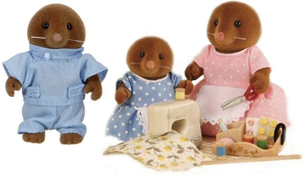 Стоит отметить, что хотя коричневые кроты и английские полевки очень похожи, всё-таки отличия у них есть. Японские кроты чуть выше, цвет флока у них темнее, носик не окрашен. Пожалуй, полевки выглядят даже более симпатично. Мне больше нравится цвет флока, да и розовый носик очень украшает. Если положить фигурки из обеих семей рядом, то разница между ними очевидна.