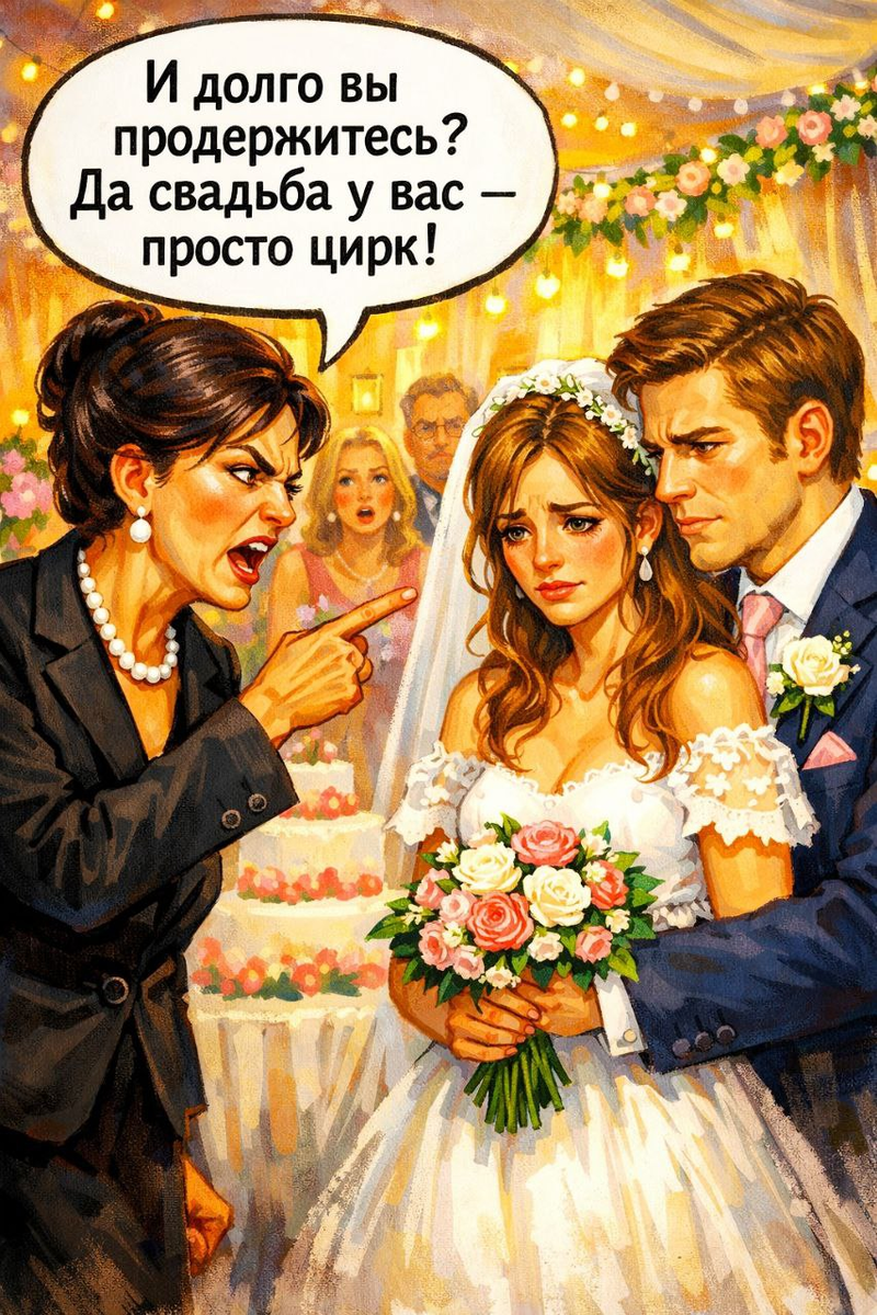 А потом был месяц подготовки к свадьбе. Валентина Петровна демонстративно не участвовала, хотя всё равно объявила, что придёт — «посмотреть на этот балаган».