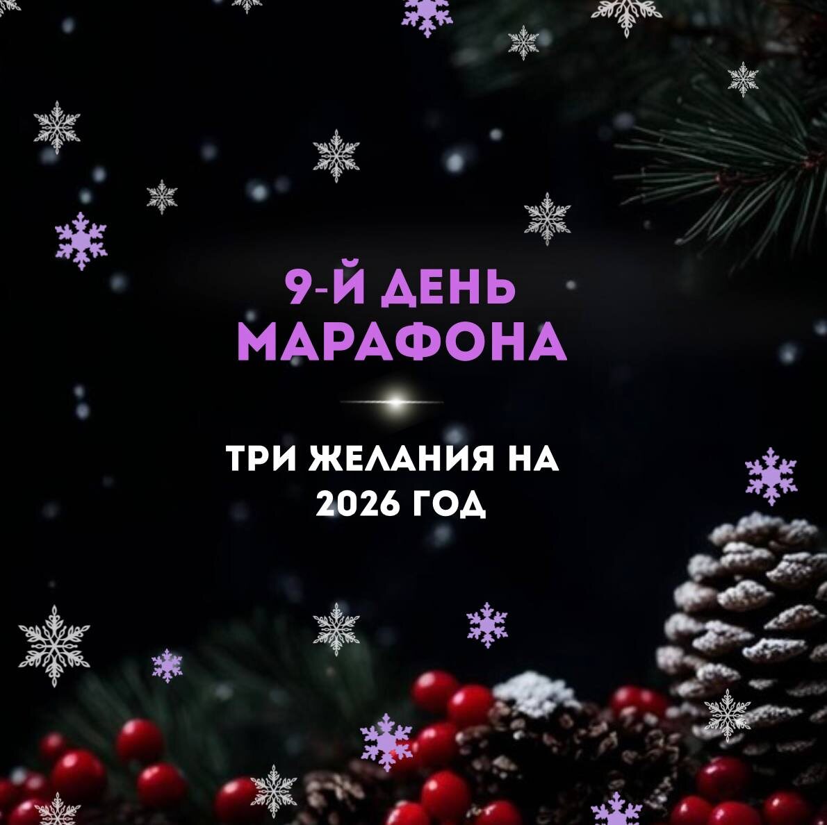 🎄 Сегодня заключительный день нашего марафона. В эти праздничные выходные дни мы чуть больше замедляемся, прислушиваемся к себе и задаём вопросы, на которые в суете не хватает времени. А что я хочу? О чеем я мечтаю?... 🎄 Рождество — время загадывать желания. ✨ Задание № 9. Напишите три желания на 2026 год Самые заветные, которые бы хотелось, чтобы реализовались в этом году. И это не обязательно сразу бежать исполнять. Можно рассматривать свои желания как подсказку — куда хочется смотреть в новом году✨ Ответьте себе на вопросы: 👉 Чего я хочу, даже если не знаю, как это реализовать? 👉 Что мне приятно просто разрешить себе хотеть? 👉 О чём я редко говорю вслух, но иногда думаю? Как делать? 1️⃣ Найдите 5–10 минут 2️⃣ Запишите всё, о чём когда-либо мечтали, думали 3️⃣ Выберите три желания 4️⃣ Напишите их на отдельный листок бумаги, перечитайте и уберите в тумбочку ✍️ На этот раз я не буду вас просить рассказать о своих желаниях. Оставьте их только для себя 😉 И пусть всё ис