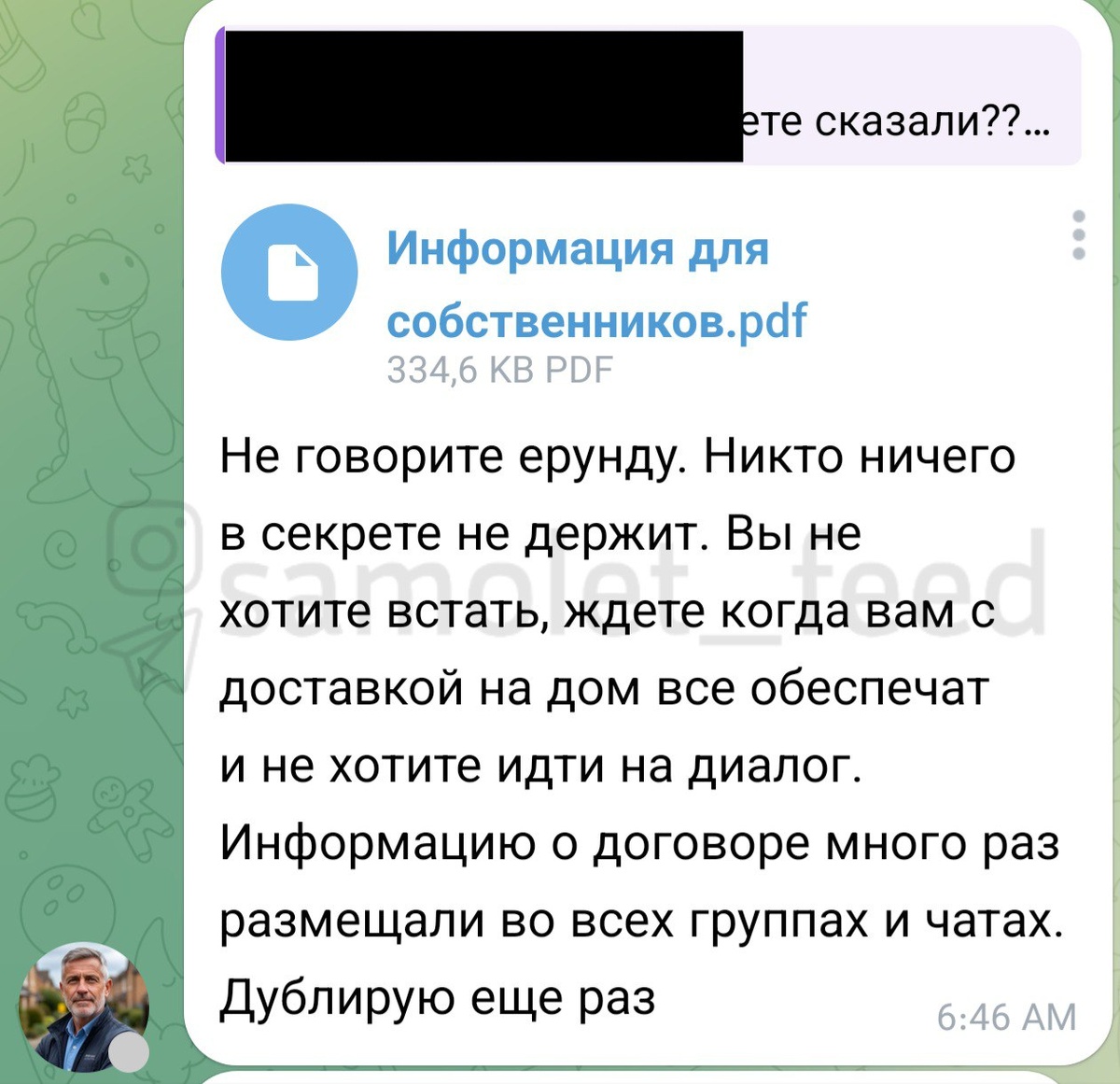 Рубрика: Ответы официального представителя УК в чатах на вопросы жителей.