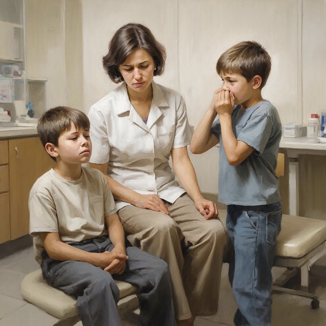 У старшего Вани (8 лет) была проблема с сетчаткой обоих глаз, тики в виде зажмуривания, определенные особенности работы сердца и аллергия на цветение. На каждом из осмотров мне казалось, что у Вани есть еще и синдром дефицита внимания и гиперактивносии (СДВГ), но я не в праве была это утверждать в силу отсутствия у себя соответствующих медицинских компетенций, а мама же от осмотров психиатра категорически отказывалась. У младшего Коли (4 года) анамнез был чуть покороче: сильнейший атопический дерматит, пищевая аллергия на яйцо и задержка речевого развития.
