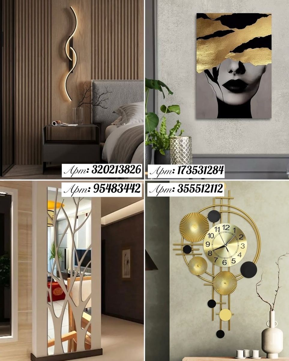 Эта подборка — про интерьер, который держится на трёх китах: свет, фактуры и точечное золото. Здесь нет случайных предметов: каждый либо создаёт настроение (бра, торшеры, люстра), либо собирает композицию (часы, зеркала, панно), либо делает базу «дорогой» (комоды, тумбы, кресло).