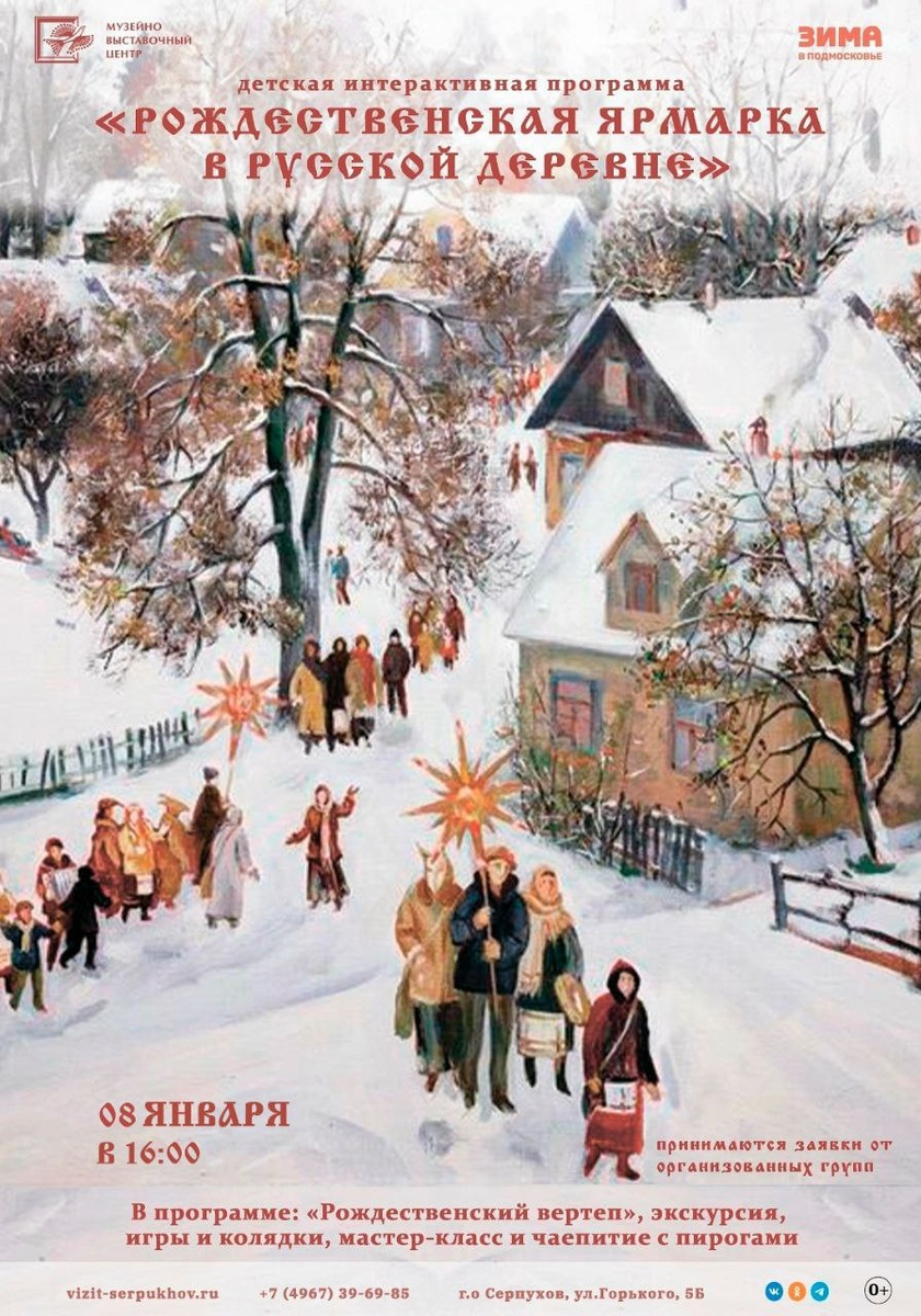 ✨ Интерактивная программа "Рождественская ярмарка в русской деревне" ❄️Вы узнаете как отмечали эти праздники в старину в русской деревне, чем украшали дома, какую носили одежду, какую готовили пищу, как веселились. 👼А в конце на память вы сделаете своими руками тряпичную народную куклу «Ангел». С 12 января приглашаем организованные школьные группы Запись по телефону ☎ +7 (4967) 39-69-85 🚫 Возраст: 0+ 📆 08.01.2026 🕒 16:00 🏢 Музейно-выставочный центр 📍 г. Серпухов, ул. Горького, 5б 💰 Цена: 330 ₽ 🎫 Купить билет: https://clck.ru/3R8p9N ⭐Поддержать канал голосом 💰 Канал Вакансии Серпухова ✅ Мероприятия Серпухов https://dzen.ru/id/66f01c6eb4c6fe60c9ca1608 http://vk.com/serpukhov_events http://dzen.ru/serpukhov_events