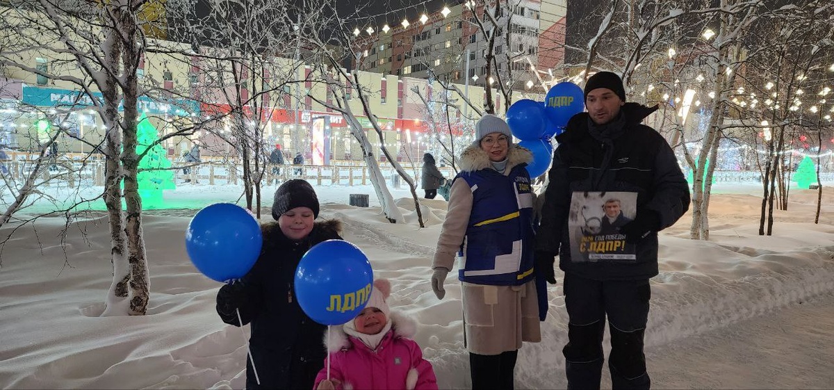 Активисты ЛДПР вышли на центральные площади города, чтобы лично поздравить новоуренгойцев с наступающими праздниками и поделиться новогодним