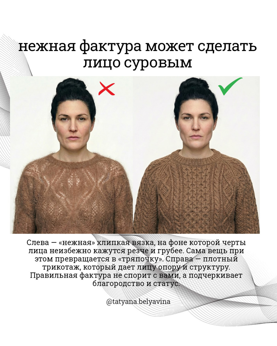 Перестаньте сочетать сумку с туфлями. Сочетайте одежду с лицом!👌 Удивительное дело: мы готовы часами подбирать юбку к джемперу, но напрочь игнорируем лицо. Хотя именно там —в глазах и мимике — сосредоточено всё то, ради чего мы затеваем игру: наше желание быть понятыми и признанными Ваше лицо — это не просто «красивое» или «не очень». Это архитектурный проект. В нем уже заложен свой ритм, своя плотность и свой масштаб. И если ваша одежда спорит с этим чертежом, вы проигрываете💯 Почему? Одежда — это не просто тряпочка, прикрывающая тело. Это визуальная рама. Если рама подобрана не к картине, а к обоям в коридоре —картина превращается в мазню💁. После 40 это становится критичным. Вы больше не можете надеть «просто футболку» и выглядеть свежо. Теперь каждая линия должна либо подтверждать то, что написано у вас на лице, либо они будут разрушать вас Стиль —это не про «я так чувствую». Это геометрия. Когда линии одежды продолжают линии вашего лица, ваше лицо выглядит моложе💪. Окружающи