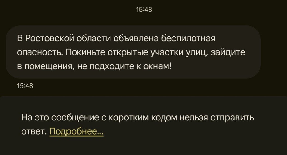 ❗️В Ростовской области вновь объявили беспилотную опасность в Рождество Предупреждение от РСЧС пришло гражданам ближе к 16:00. Мониторинговые каналы дополняют информацию: в потенциальной зоне риска Миллеровский, Чертковский и Тарасовский районы. Жителей призывают сохранять спокойствие и следить за официальными источниками информации.