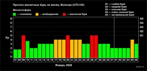 Январь в Вологодской области пройдет на фоне повышенной солнечной активности. По данным специалистов Лаборатории солнечной астрономии ИКИ и ИСЗФ, в течение месяца ожидается несколько периодов геомагнитных возмущений различной интенсивности.