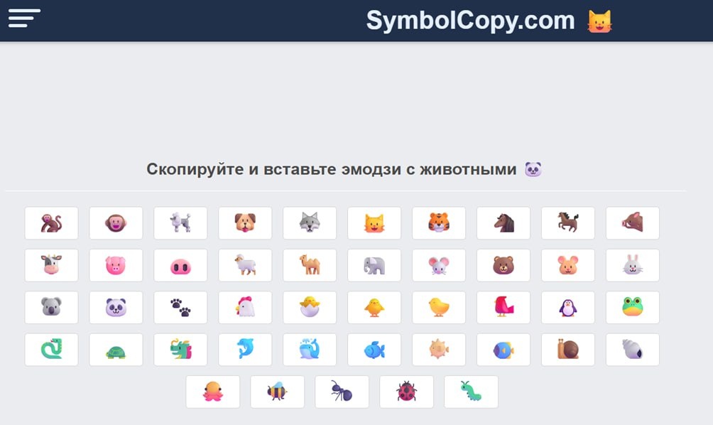 Нашла удобный сервис для тех, кто помогает добавлять эмодзи и другие символы в переписку и в код! На сайте https://www.symbolcopy.com/ , например, можно быстро копировать символы различных животных: мартышек, пуделей, волков, кошек, тигров, слонов и панд. Всё очень просто: кликаете на нужный символ – он автоматически копируется в буфер обмена. Не нужно долго искать нужный эмодзи или помнить сложные комбинации клавиш. Особенно полезно, когда нужны специальные символы, а чтобы найти его на клавиатуре или в интернете требуется много времени. Этот ресурс особенно пригодится для оформления постов в соцсетях, создания милых сообщений или просто для того, чтобы добавить немного эмоций в текст. PocoLab.ru