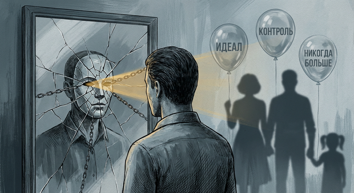 - Гиперконтроль через тревогу: Реакция жены на его прошлые срывы (опухшие глаза, паника) — это не просто забота. Это бессознательное сообщение: «Твой малейший промах убьёт нас всех».