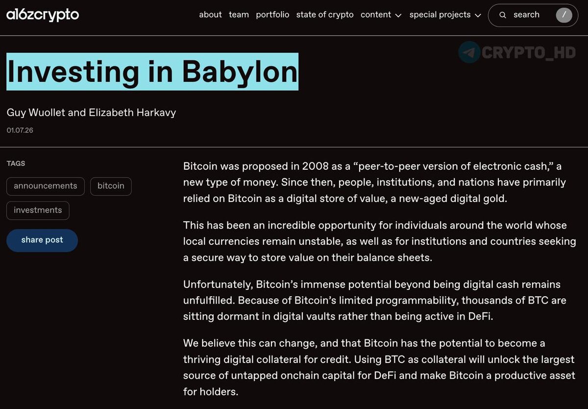 💸 #BABY Компания Andreessen Horowitz (a16z) инвестировала $15,000,000 в Babylon – анонс
